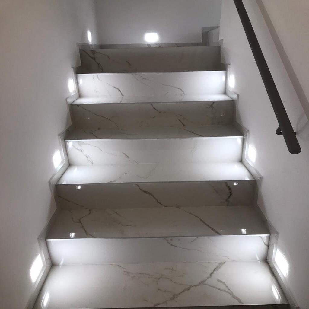 El mobiliario ha sido seleccionado para reforzar la sensación de calidez y confort: terciopelos suaves, cojines con motivos naturales y toques dorados que aportan brillo sin estridencias. La escalera retroiluminada, revestida también en mármol, añade un efecto teatral al tránsito vertical de la vivienda, mientras que las superficies blancas reflejan la luz y amplifican la sensación de amplitud. Este equilibrio entre modernidad y refinamiento convierte cada estancia en una experiencia estética y funcional.